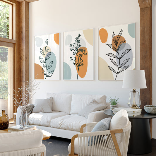 Earthy Elegance: Minimalist Abstract Floral Trio – Wall Art Set of 3