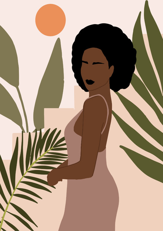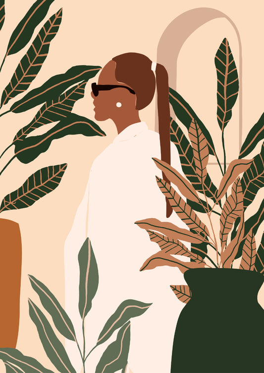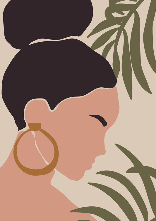 Beautiful Abstract Fashion Woman Luxury look with Pastel Tropical leaves in background