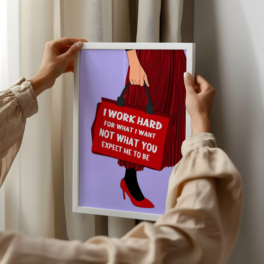 "I Work Hard" Motivational Poster – Bold Woman Series