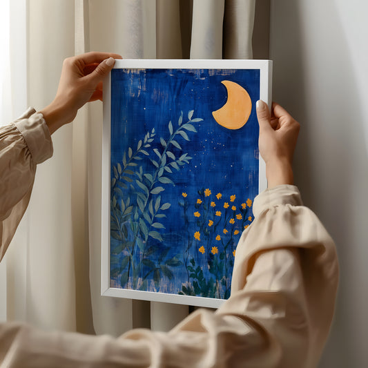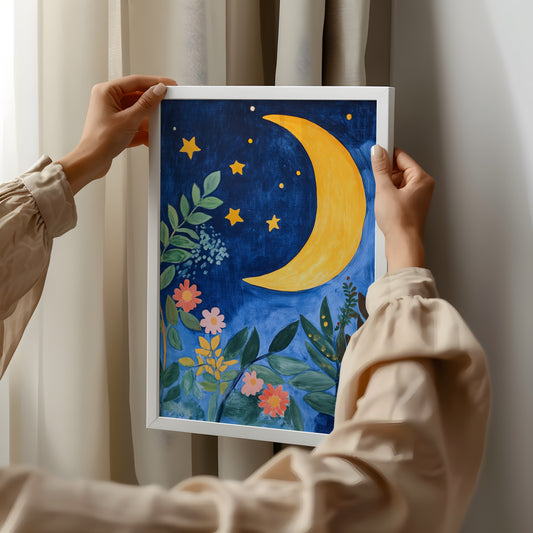 Crescent Moon Garden - Post-Impressionist Night Floral