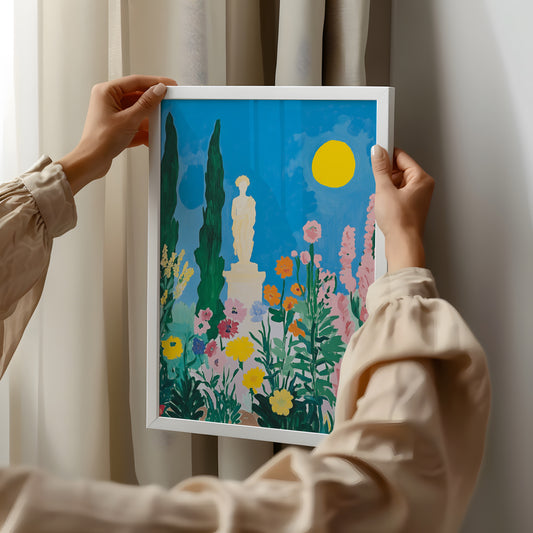 The Sunlit Statue - Post-Impressionist Garden Poster
