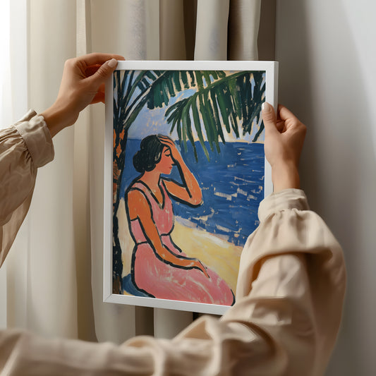 Shoreline Contemplation - Post-Impressionist Figure Poster