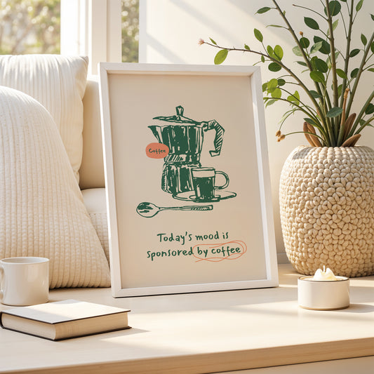 "Today’s Mood is Sponsored by Coffee" – Quirky Coffee Quote Poster