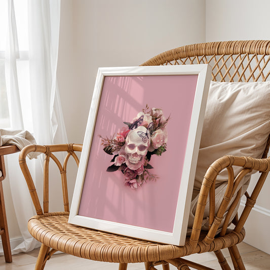 Eternal Elegance: Skull, Flowers & Butterflies Art Poster