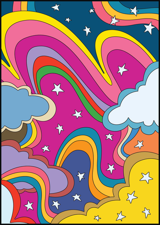 Psychedelic Art - Stars, Rainbow and Cloud