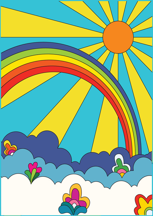 Psychedelic Art - Sun, Rainbow and Flowers