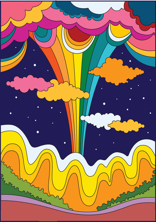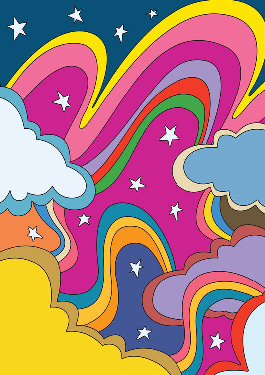 Psychedelic Art - Rainbow, Stars and Cloud