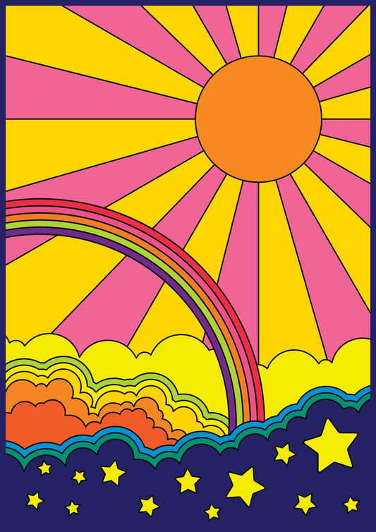 Psychedelic Art - Sun, Stars and Rainbow
