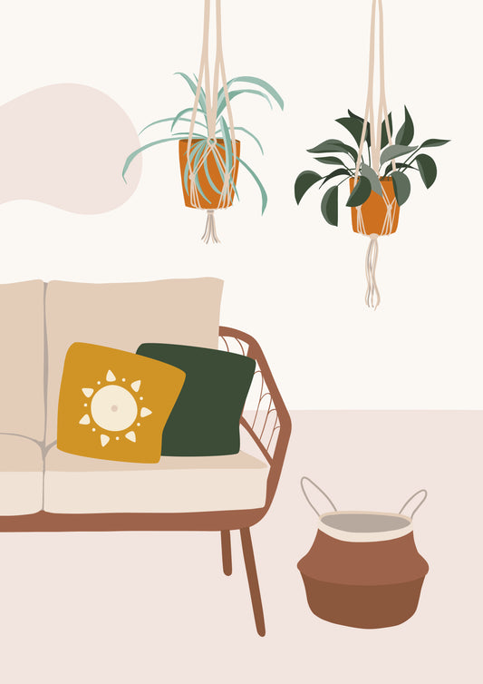 Hand drawn boho interior