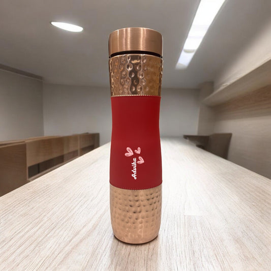 CLINK - [Personalised] Handmade Copper Bottle with Matt Finish, Crimson Canvas Color, 1 Litre