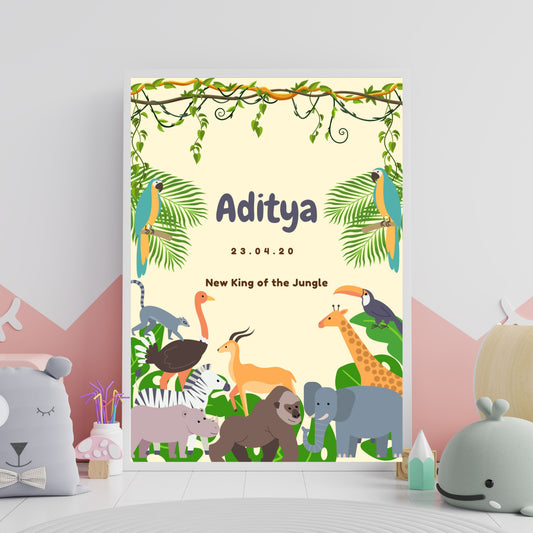 Personalized Jungle Themed Nursery Poster - Name, DOB and Tagline