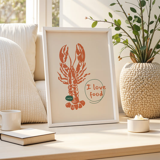 "I Love Food" - Modern Lobster Art Print | Kitchen & Dining Wall Decor