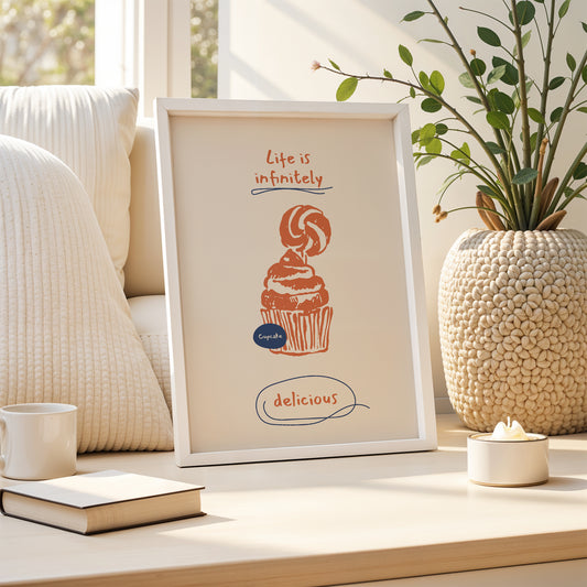 "Life is Infinitely Delicious" - Cheerful Cupcake Wall Art