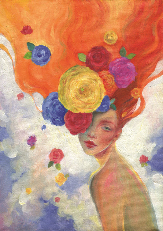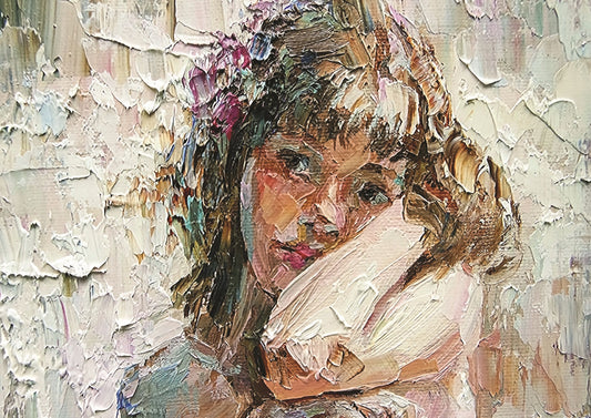 Contemporary Oil Painting of Beautiful Woman and Flowers