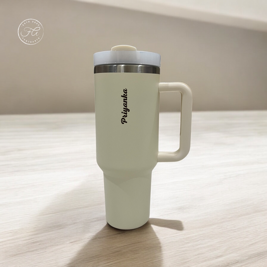 CLINK - [Personalised] 1.2L Stainless Steel Tumbler with Handle Straw & Lid - Ivory Mist Color