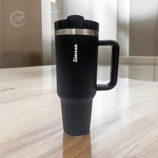 CLINK - [Personalised] 1.2L Stainless Steel Tumbler with Handle Straw & Lid - Midnight Black Color