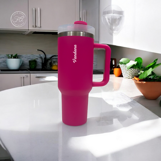 CLINK - [Personalised] 1.2L Stainless Steel Tumbler with Handle Straw & Lid - Fuchsia Rose Color