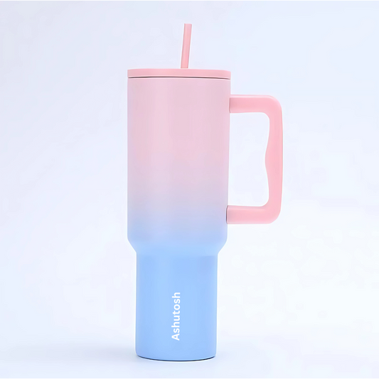 CLINK - [Personalised] 1.2L Stainless Steel Tumbler with Handle Straw & Lid - Pink & Blue Color