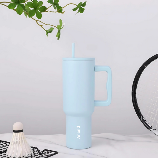 CLINK - [Personalised] 1.2L Stainless Steel Tumbler with Handle Straw & Lid - Sky Blue Color