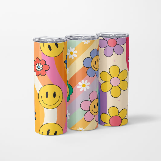 Stainless Steel Tumbler - Floral & Smiley Designs