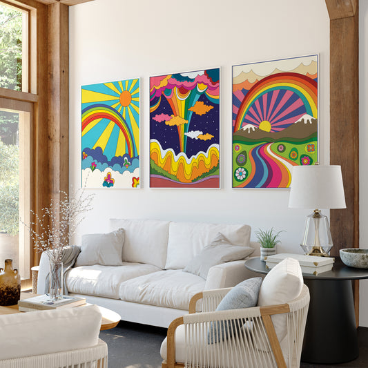 Rainbow Reverie: Psychedelic Dreamscape Poster Set (Trio)