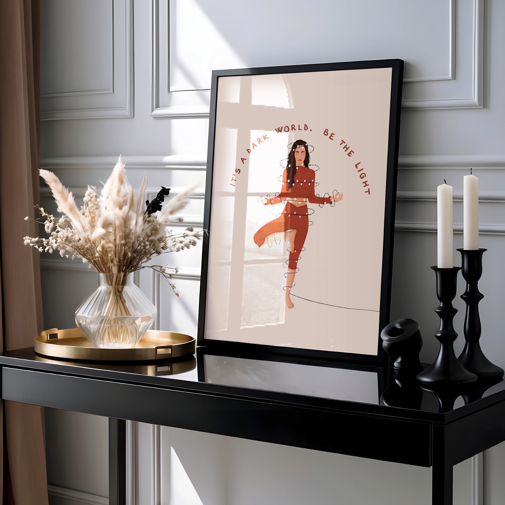 Celebrate strength and inspiration with this striking "Be the Light" illustration. Featuring a powerful woman paired with an uplifting quote, this design motivates you to shine brightly and lead with confidence. Perfect for those who embrace empowerment and positivity in every step.