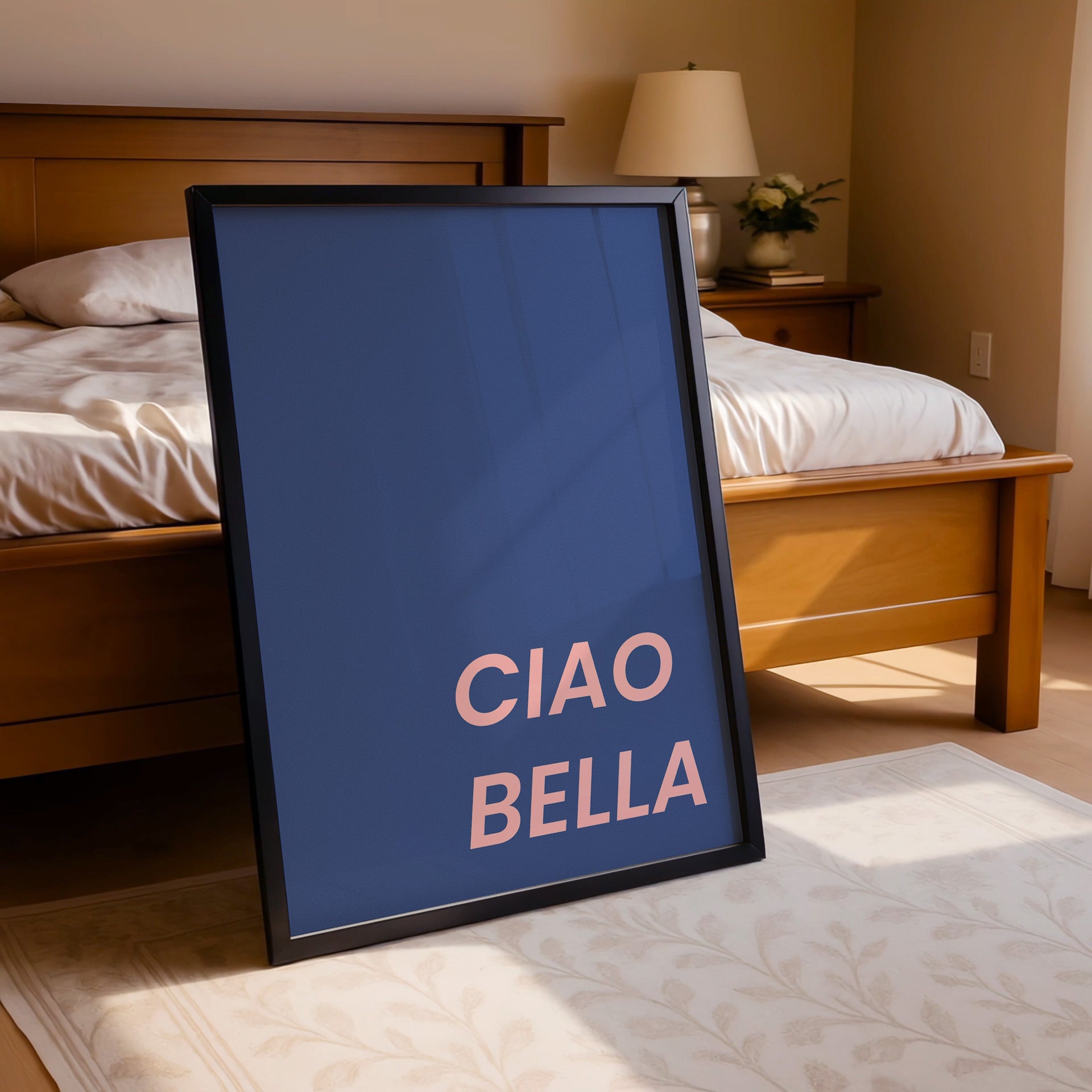 Say hello to style with this sleek “Ciao Bella” print! Featuring soft blush-toned text on a deep navy blue backdrop, this minimalist piece brings European sophistication and effortless charm to any décor. Hang it by the door, in a dressing area, or anywhere that could use a flirty pop of Italian spirit.