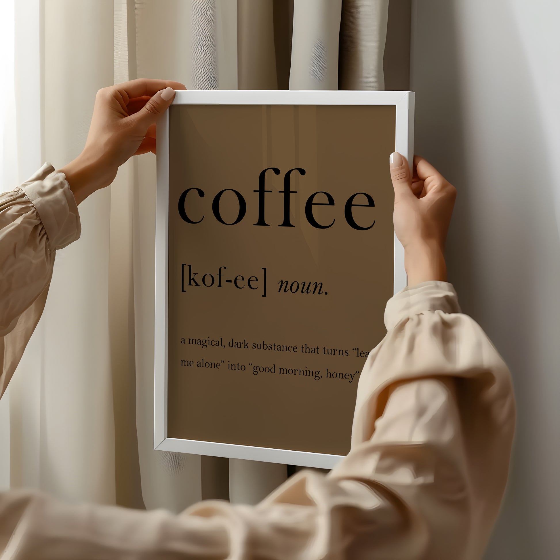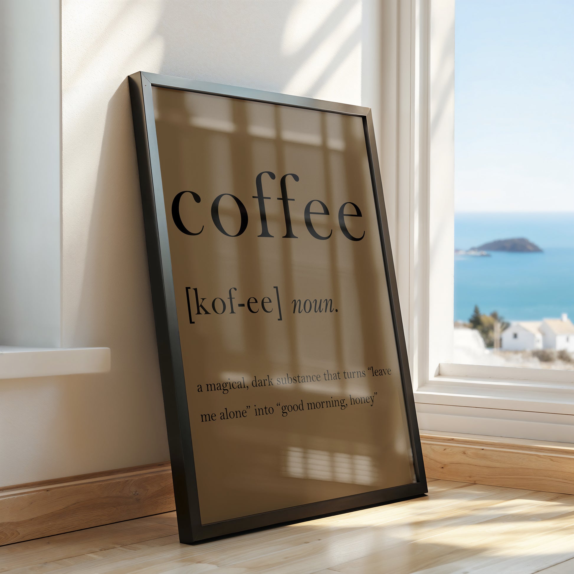 Indulge in the irresistible love affair with Coffee, as defined by this charming and witty piece. A must-have for coffee enthusiasts, this piece perfectly captures the essence and allure of the beloved beverage. Display it in your home or office and declare your love for Coffee in a sophisticated and artistic manner.