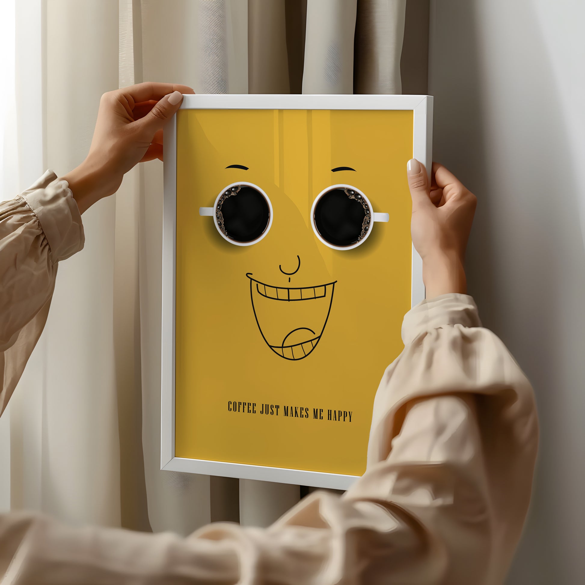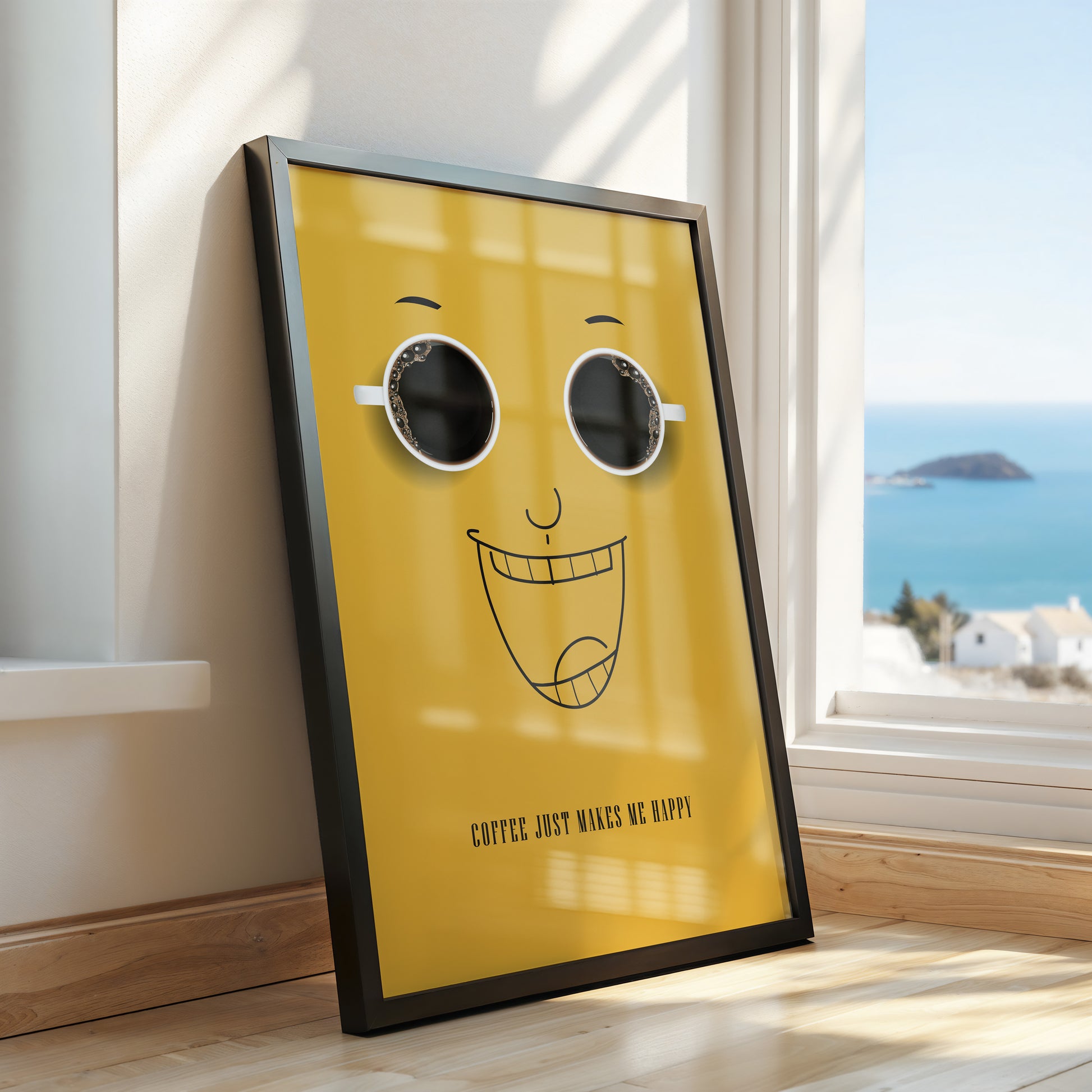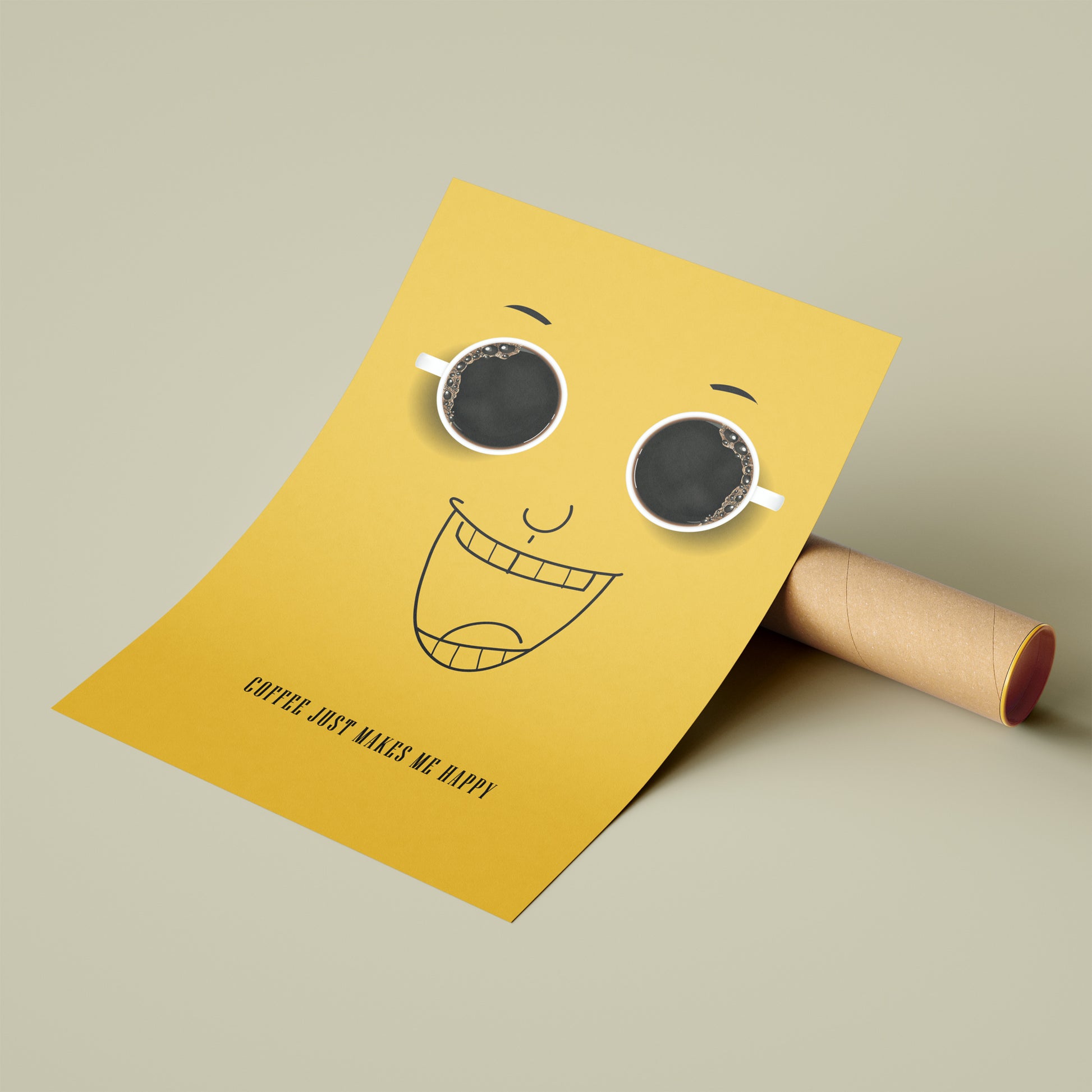 Find your daily dose of joy with this poster. Featuring a playful design and quirky language, it adds a touch of fun to your home or office. No need for caffeine when this poster reminds you that coffee just makes you happy (not included). Keep calm and brew on!