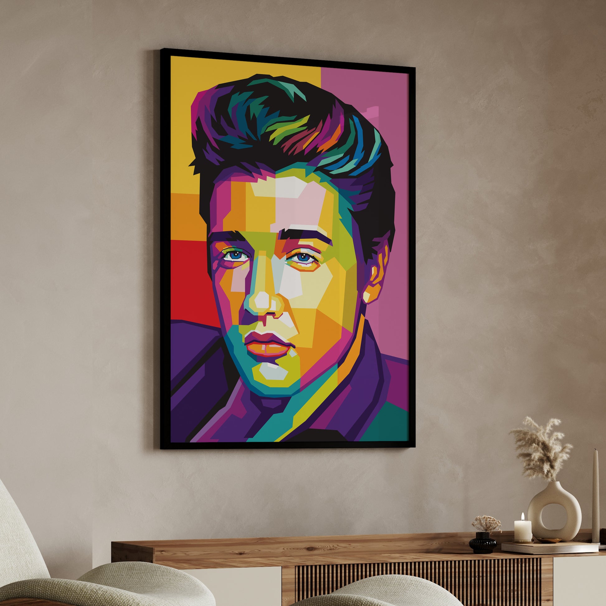 Celebrate the iconic legacy of Elvis Presley with this sophisticated Pop Art piece. Featuring bold colors and dynamic design, it brings a modern twist to a timeless legend. Perfect for adding a touch of artistic flair and cultural significance to any space.