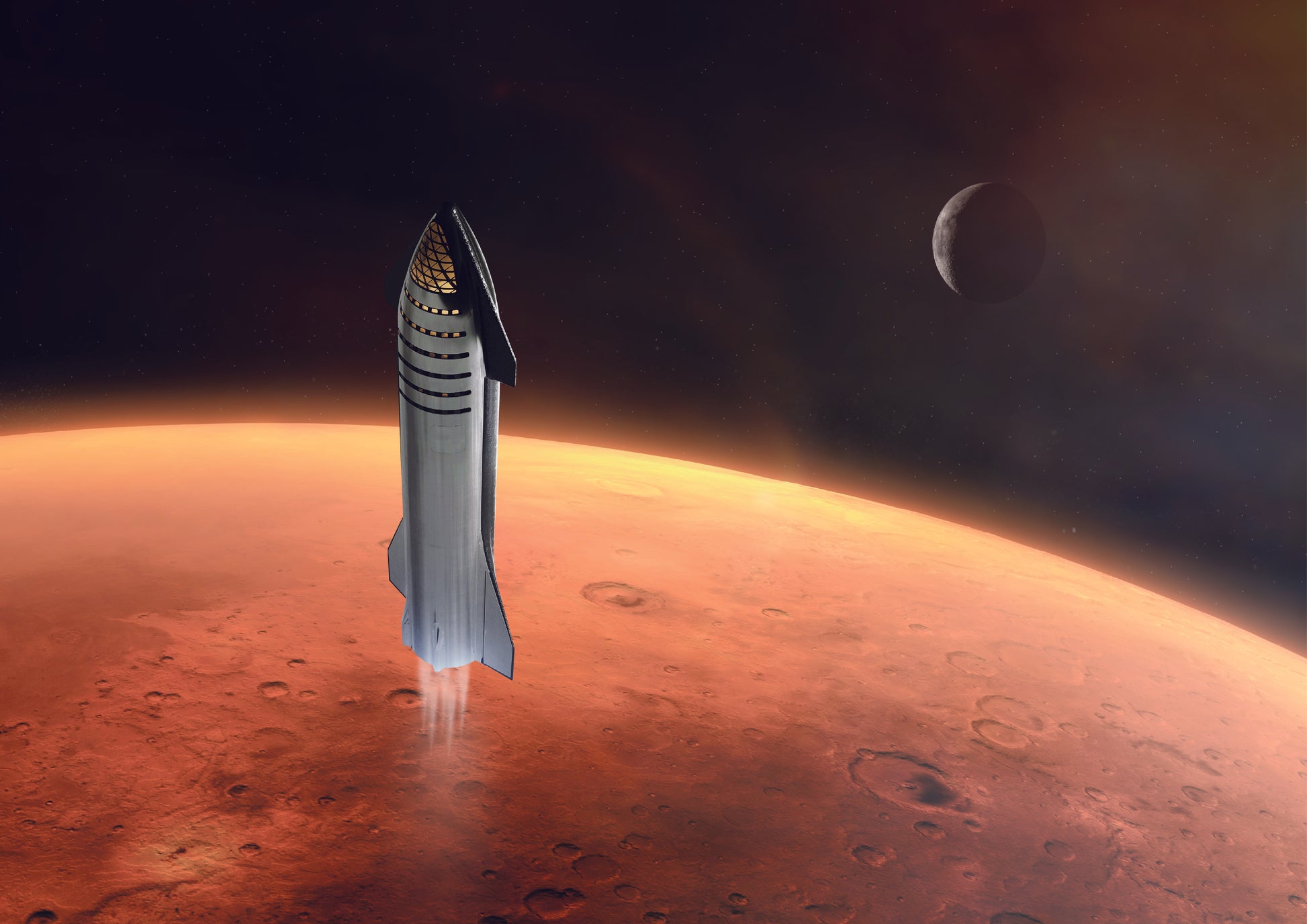Heavy Starship takes off from Mars