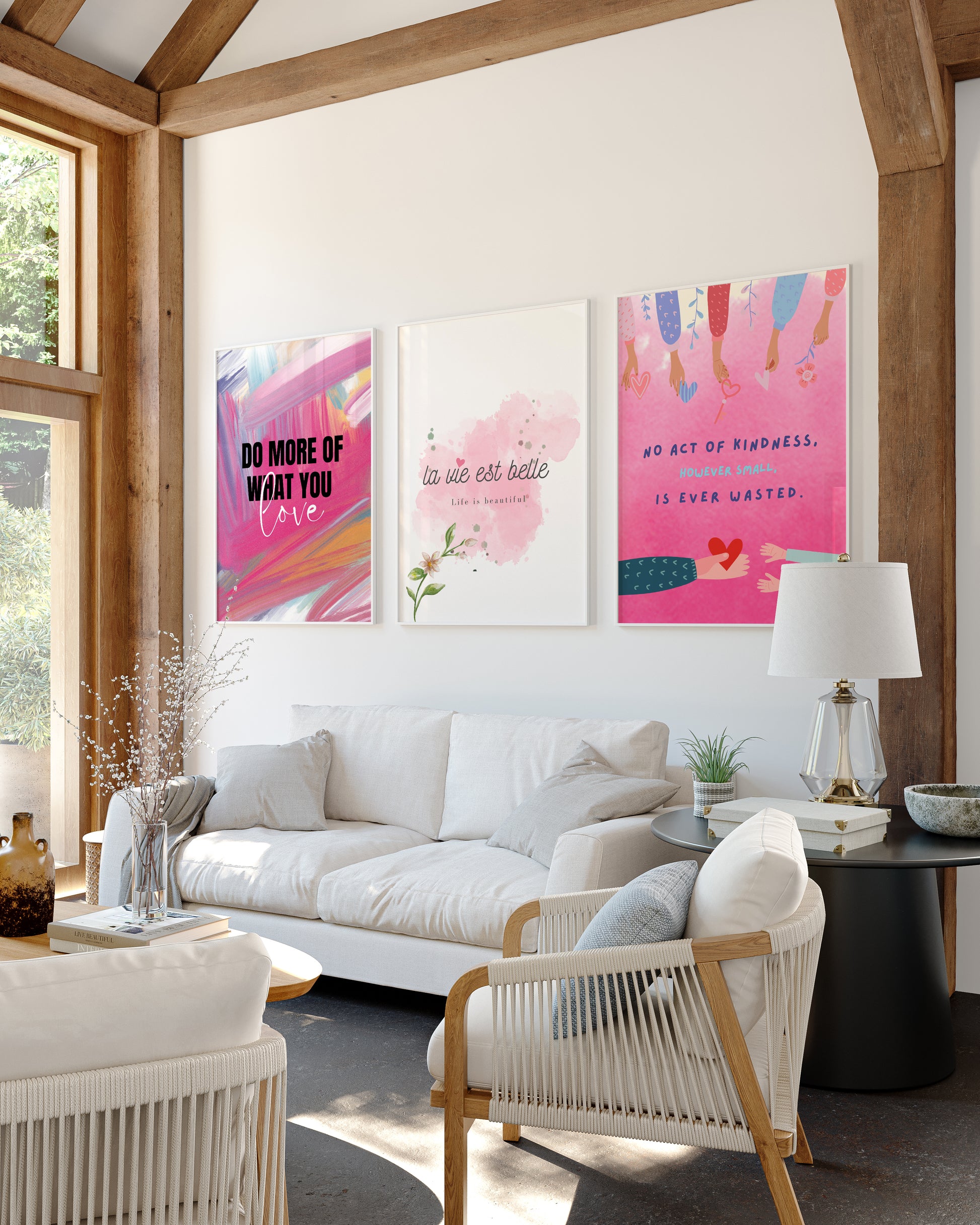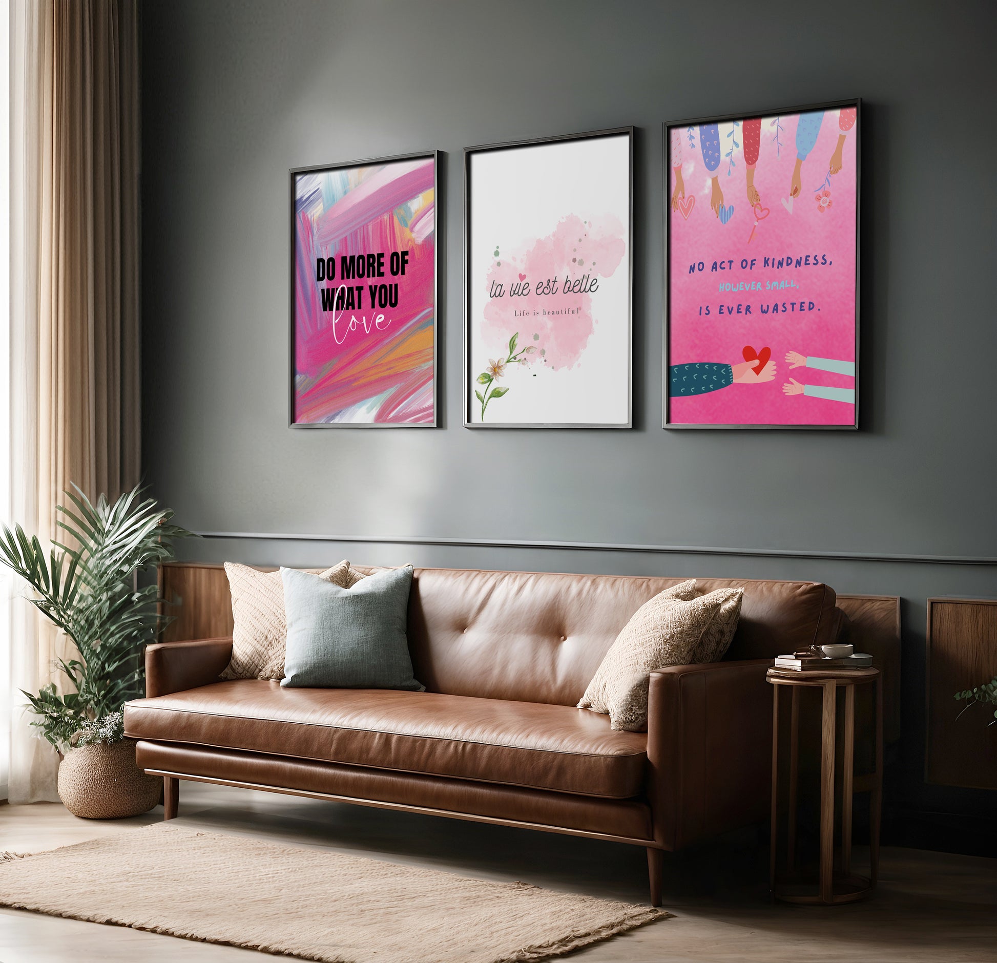 Transform your space into a sanctuary of inspiration with our curated set of three art prints. Designed to complement each other perfectly, this trio tells a beautiful story of passion, beauty, and kindness, creating an instant gallery wall that elevates any room with modern style and positive energy.