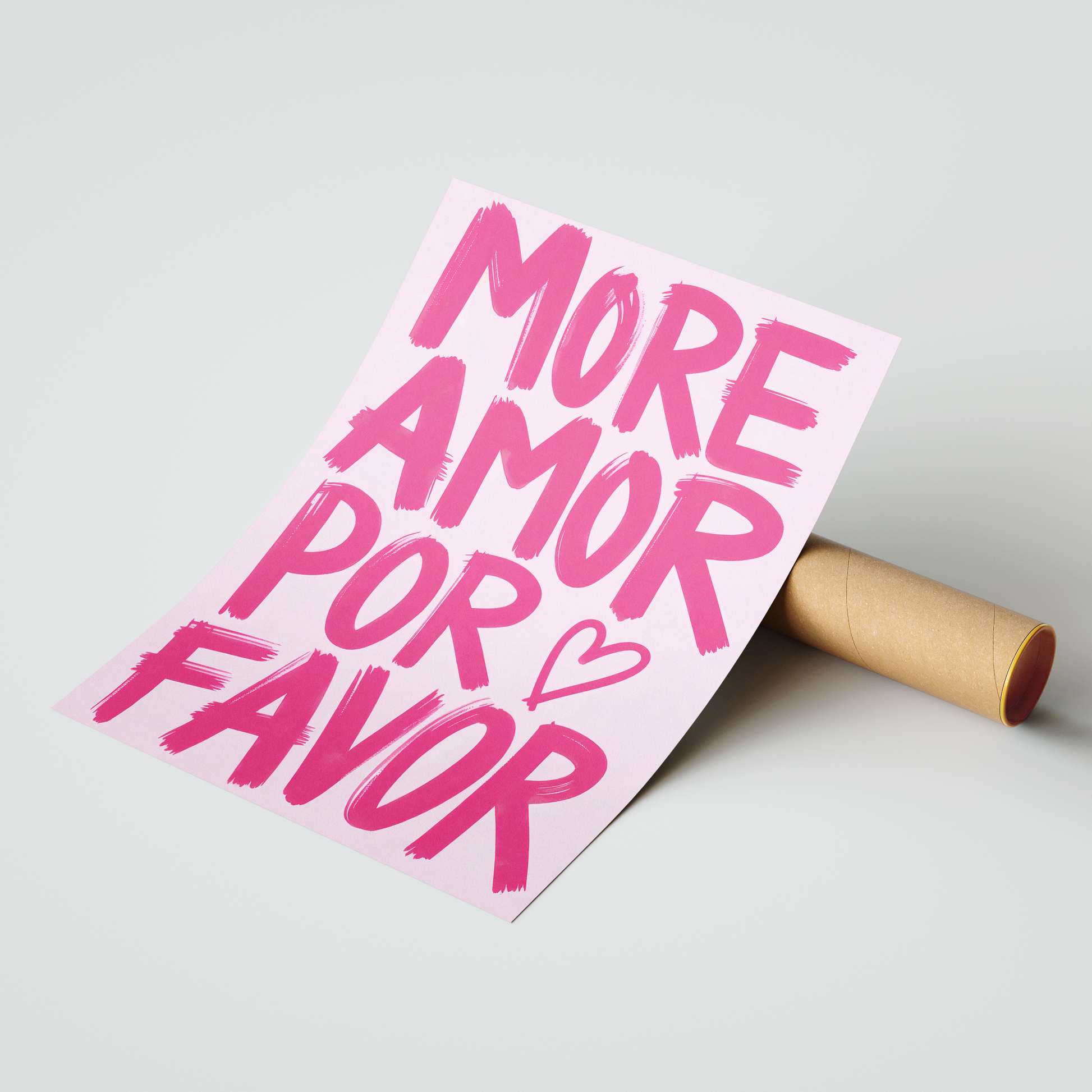 Spread joy and positive vibes with the “More Amor Por Favor” Art Poster. Bursting in vibrant pink, the brushstroke-style text translates to “More Love Please,” exuding warmth, friendship, and a caring spirit in both Spanish and English. The bold typography and playful heart accent create an instant mood-lifter, making this poster the perfect centerpiece for spaces that cherish love and connection.