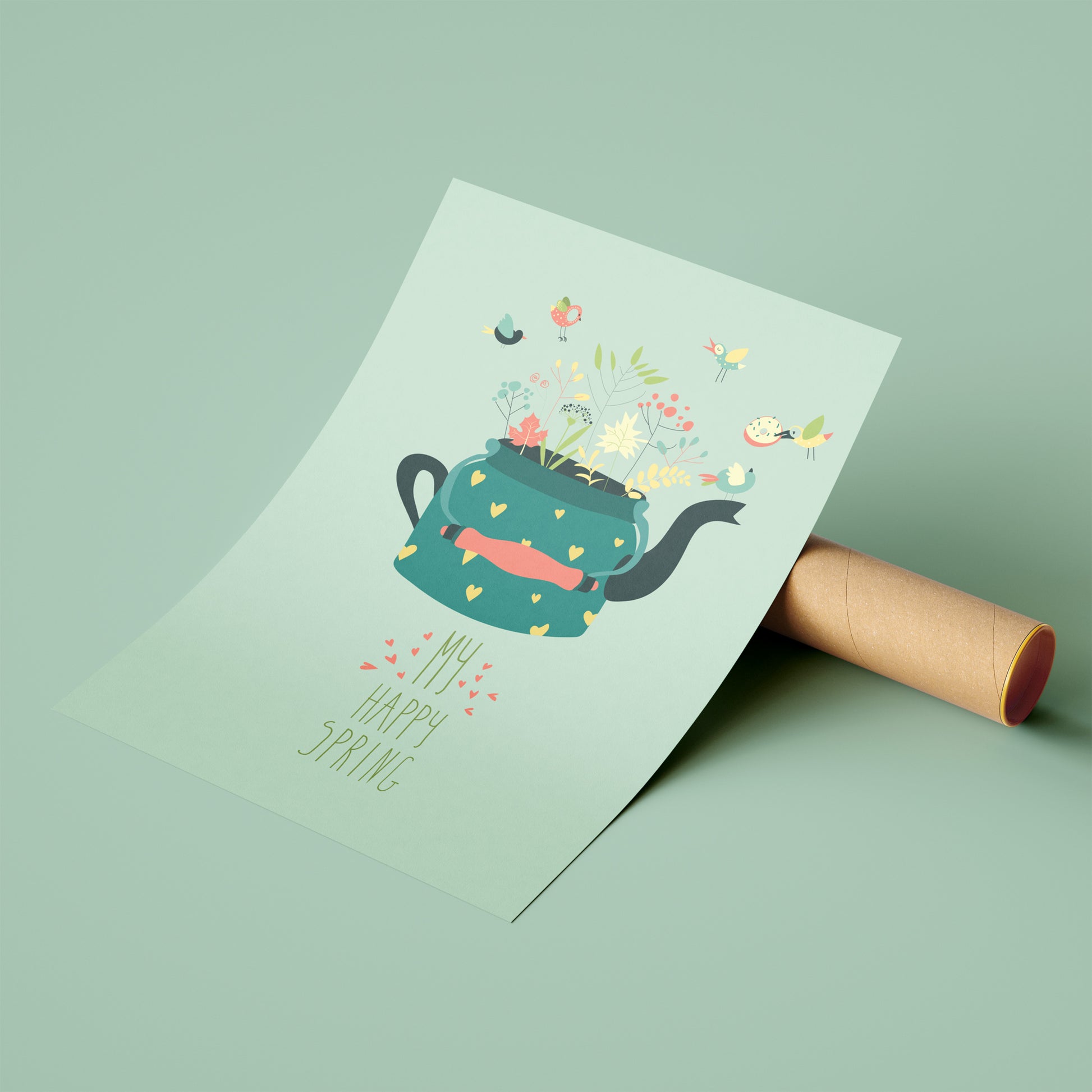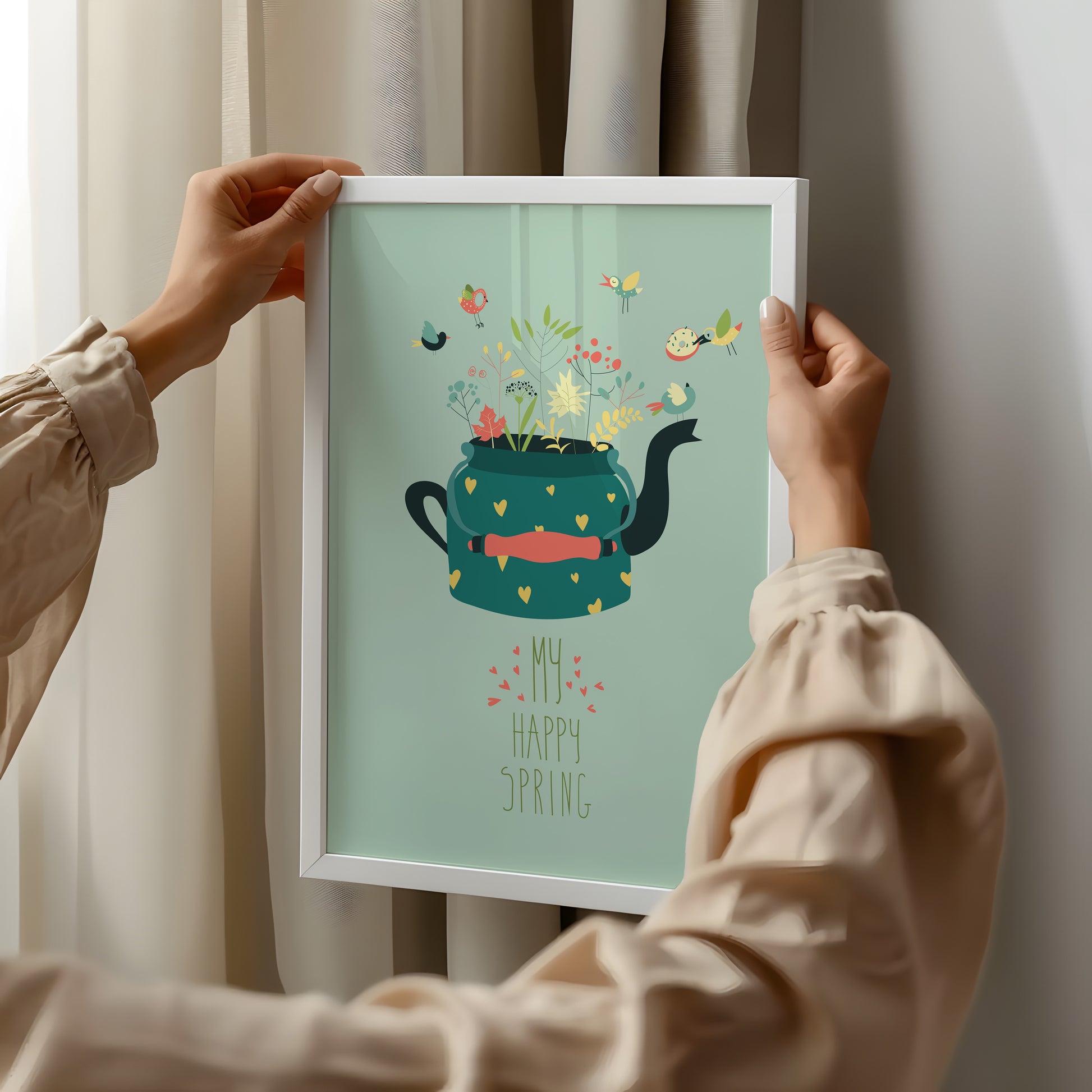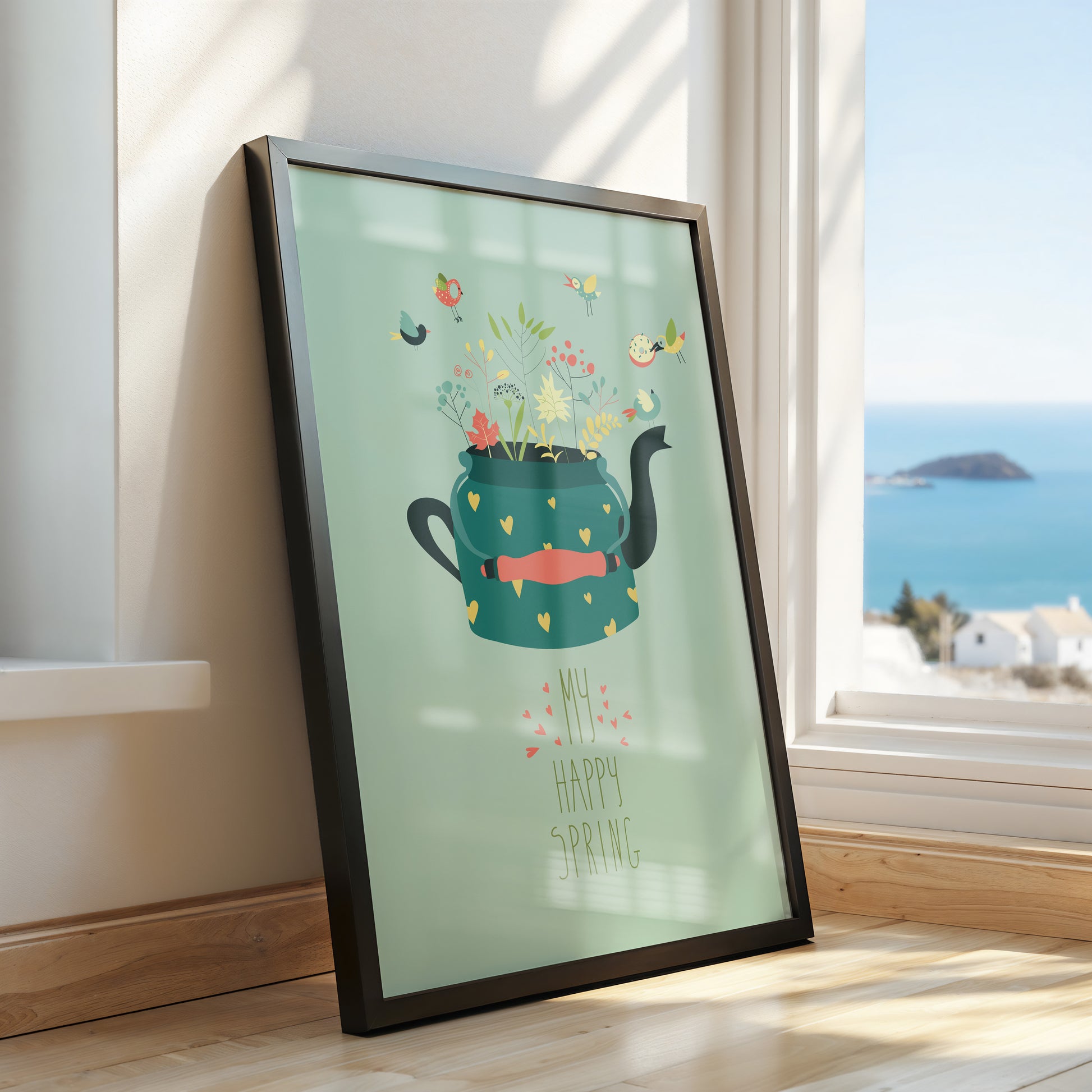 Indulge in the luxury of My Happy Spring, a sophisticated poster featuring a cup of tea. Sip on the potential benefits of happiness and warmth this spring. A perfect addition to any home, this poster exudes elegance and exclusivity with its artistic allusions and rich sensory language.