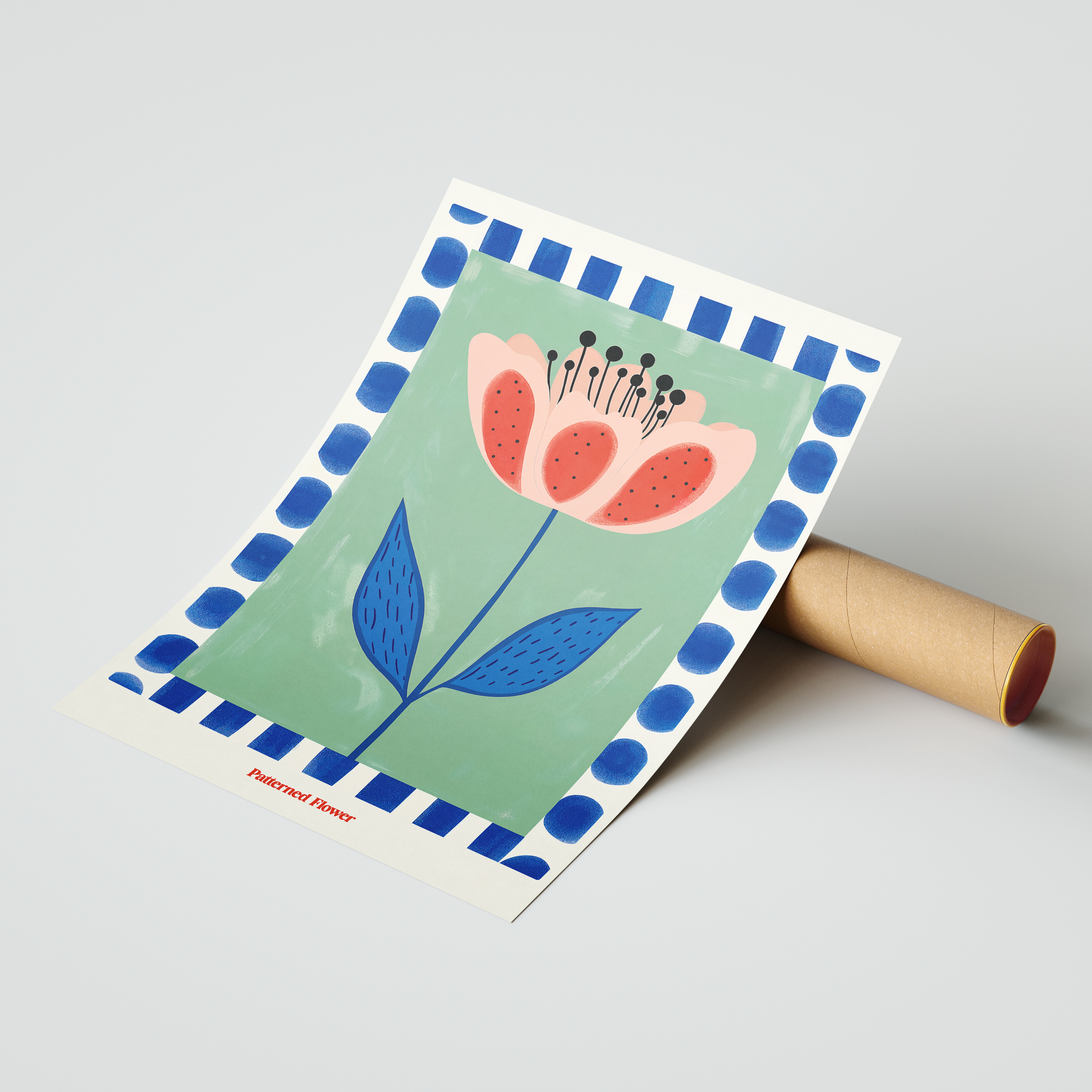 Introduce a pop of happiness into your space with "Patterned Bloom," a strikingly modern floral artwork designed for the Dopamine Gallery collection. This piece showcases a bold, stylized flower with blush pink and vibrant red petals adorned with playful black patterns. Crisp blue leaves and a whimsical dotted border frame the central bloom atop a soothing mint-green backdrop. The design’s clean lines and cheerful palette evoke feelings of joy, positivity, and carefree optimism, perfect for brightening up minimalist interiors, creative studios, or cozy corners. "Patterned Bloom" is more than just decor—it’s a celebration of simple beauty and uplifting energy, instantly enhancing your mood and inspiring moments of delight every time you see it.