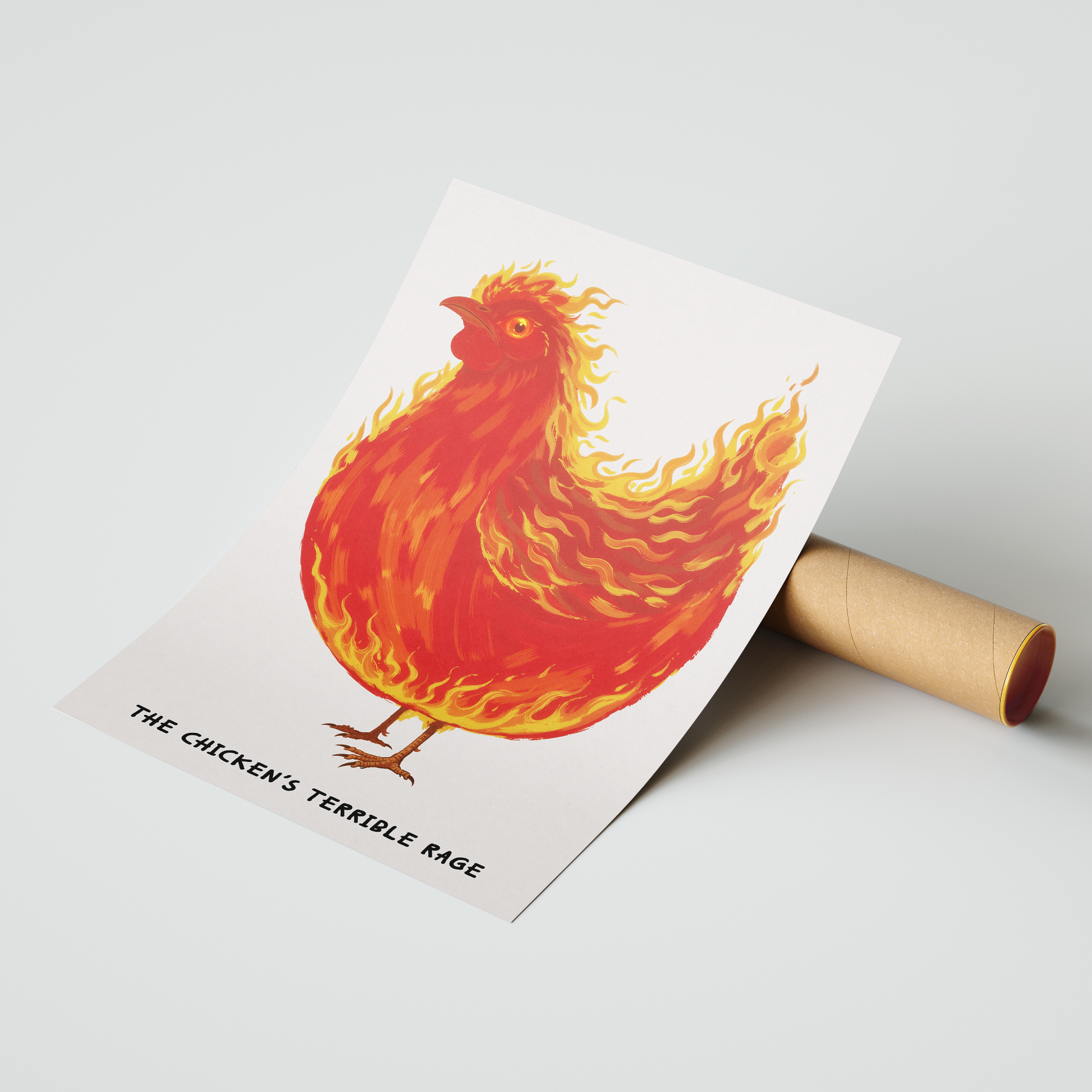The Chicken’s Terrible Rage – Fiery Hen Pop Art Poster
