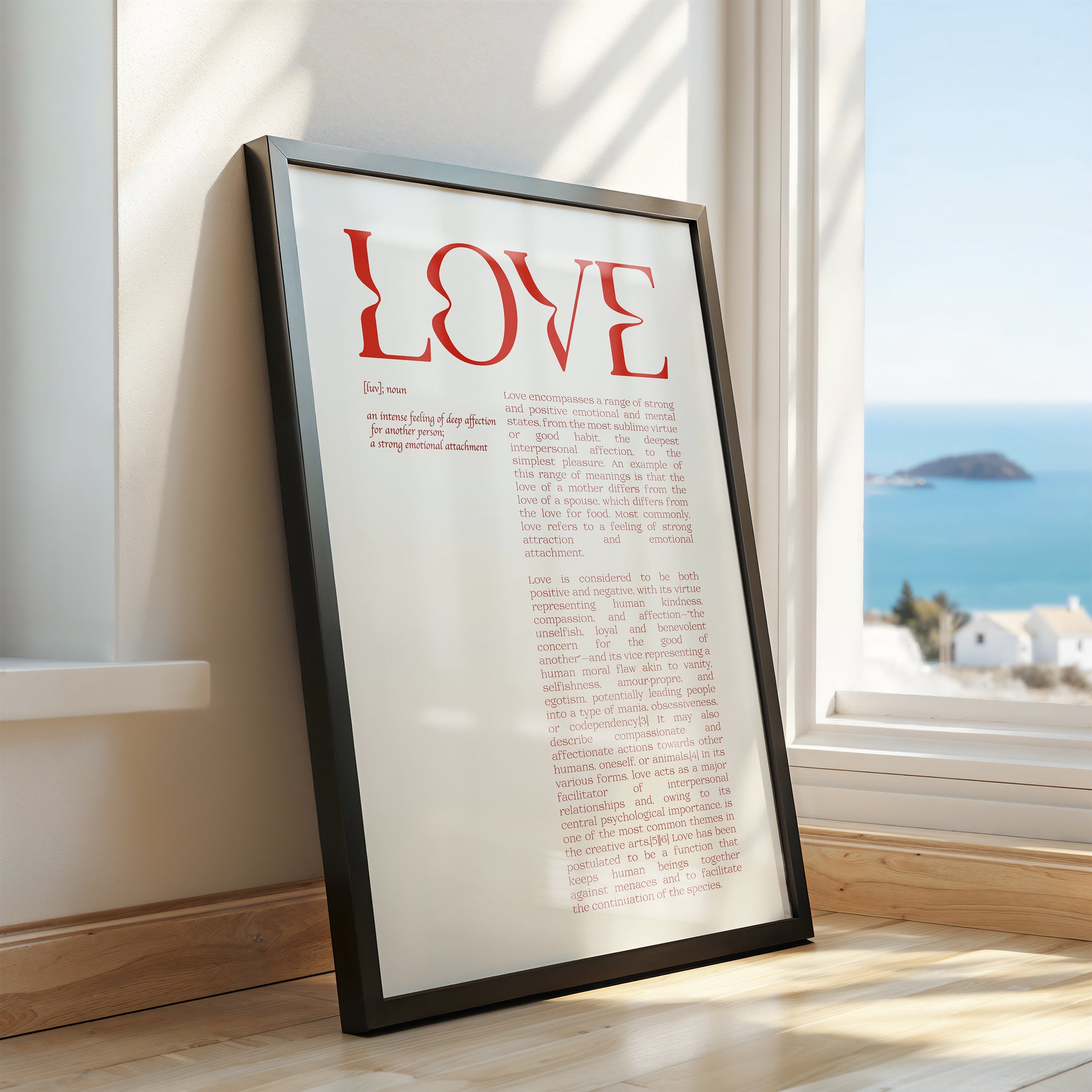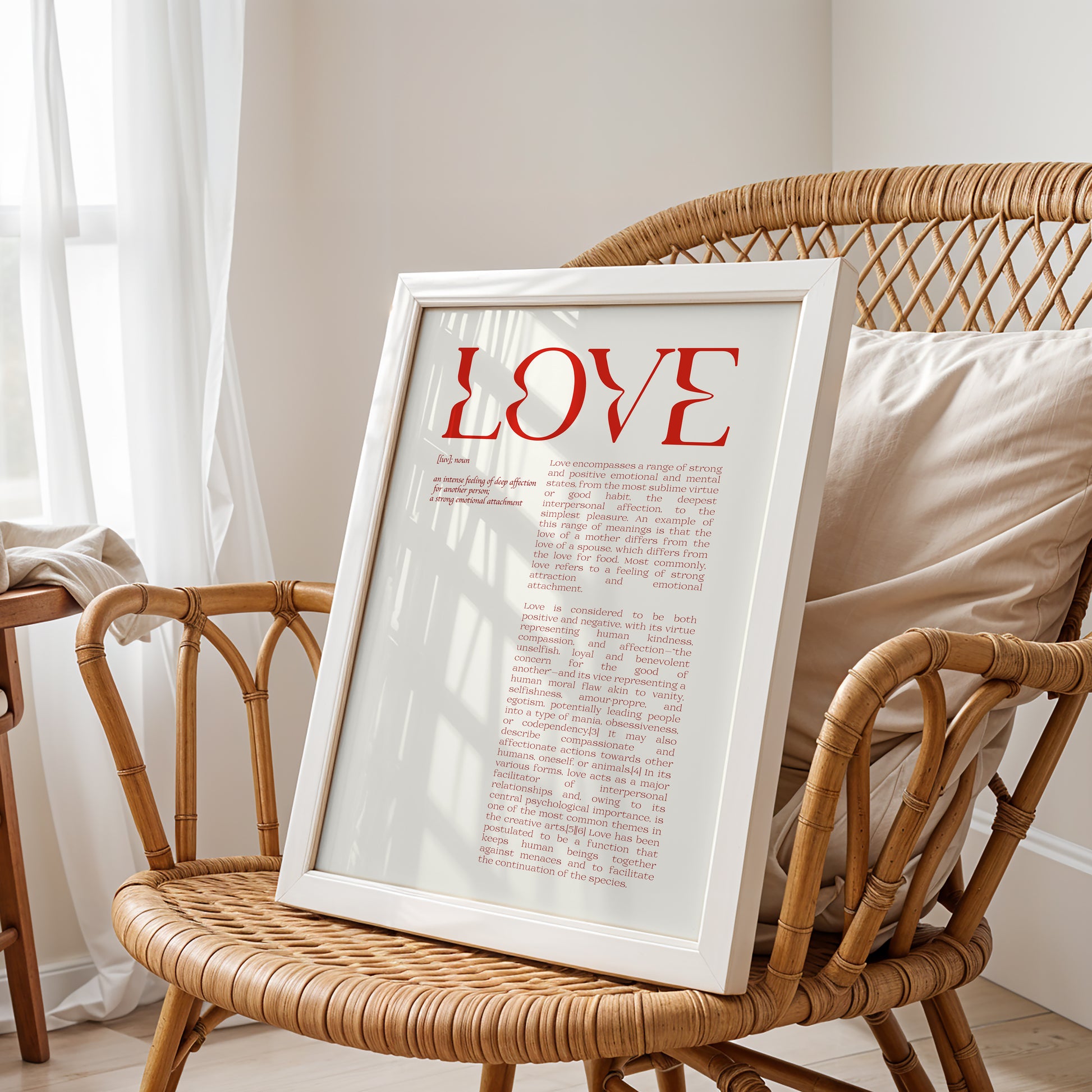 Perfect for the modern romantic or the lover of classic design, this print adds a touch of understated elegance to any space. It’s an ideal addition to a living room, home office, or a chic gallery wall, exploring the multifaceted meaning of the world's most powerful word.