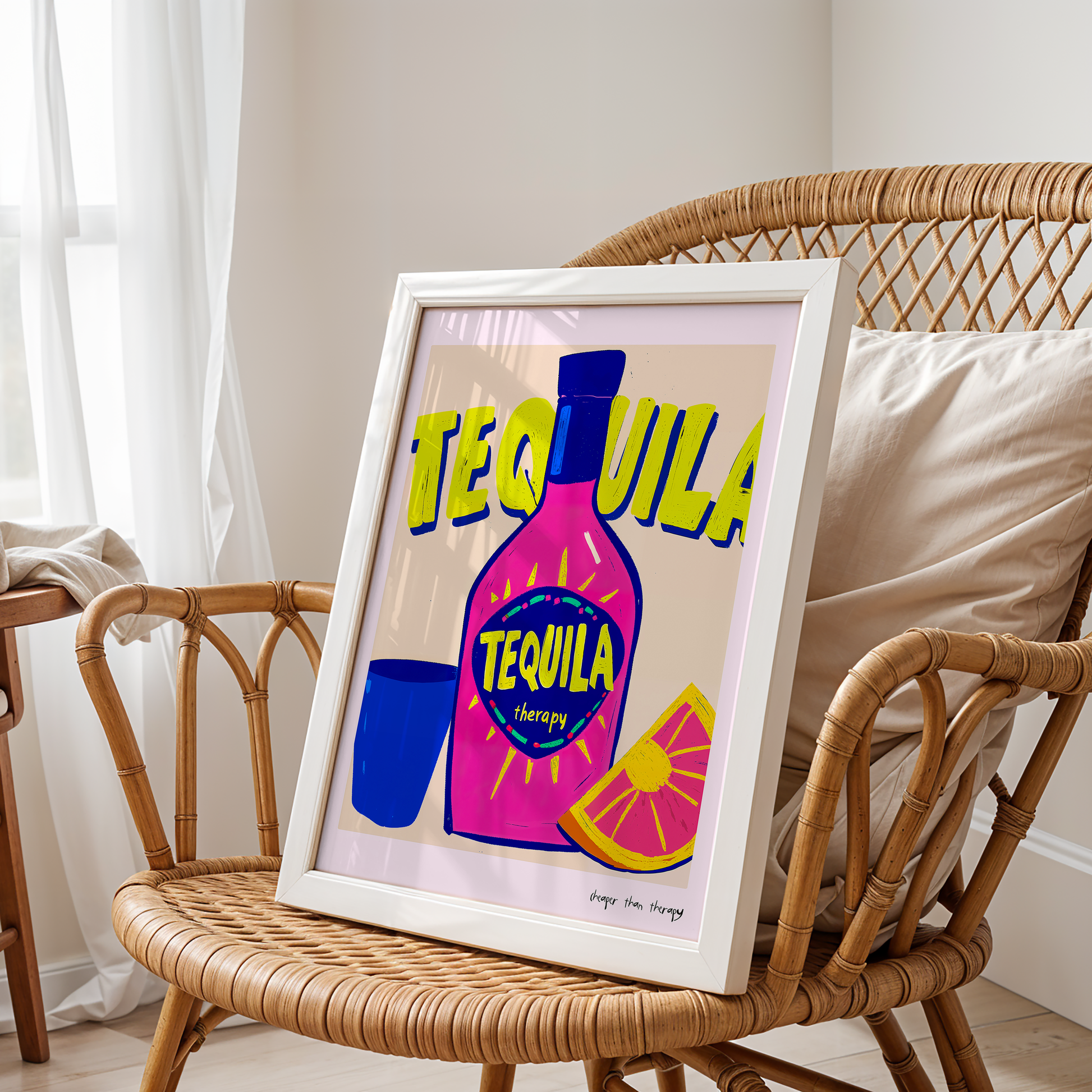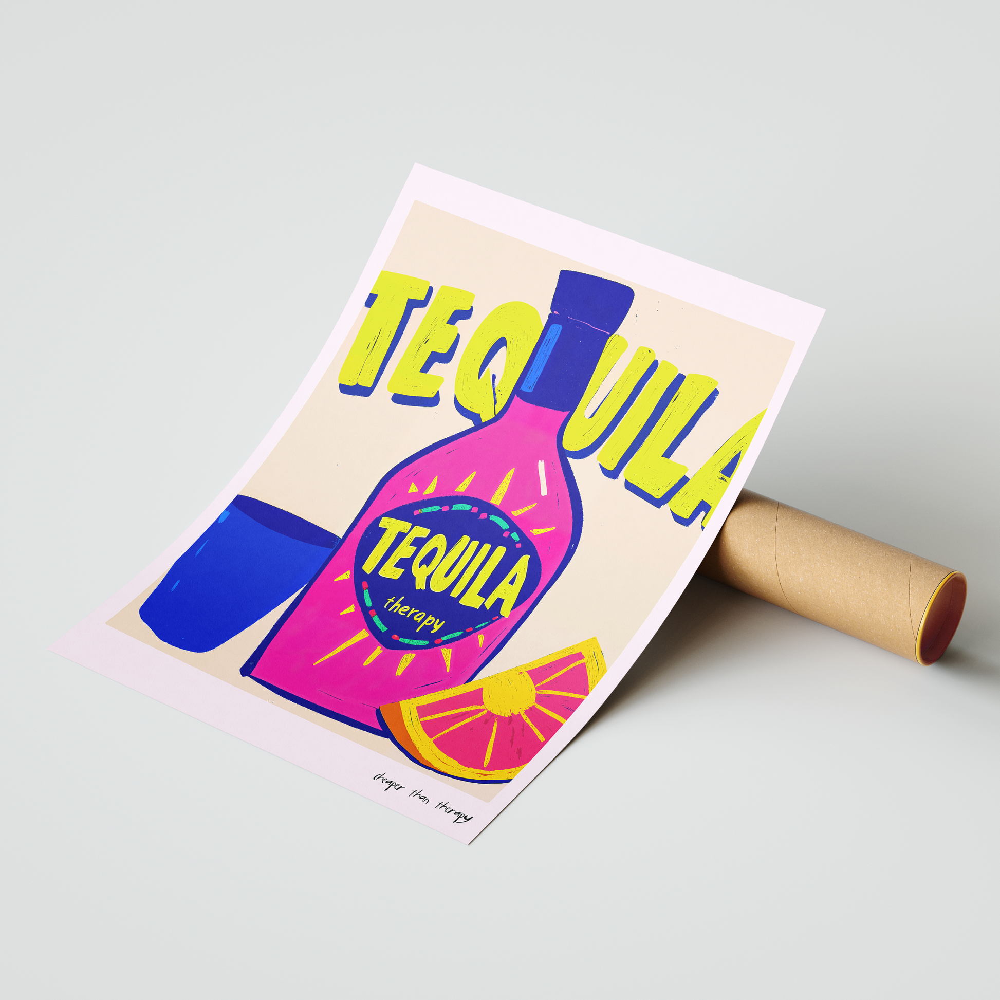 Shake off your worries and toast to good vibes with "Therapy Time: Tequila Therapy," a lively, neon-hued poster from the Dopamine Gallery collection. This bold artwork features a classic tequila bottle, a vibrant shot glass, and a juicy wedge of citrus—guaranteed to brighten up any space and turn any moment into happy hour. Perfect for bars, kitchens, party corners, or anywhere that needs a dose of color and a splash of cheer, this print is your reminder that sometimes, the best therapy comes in a salted rim glass!