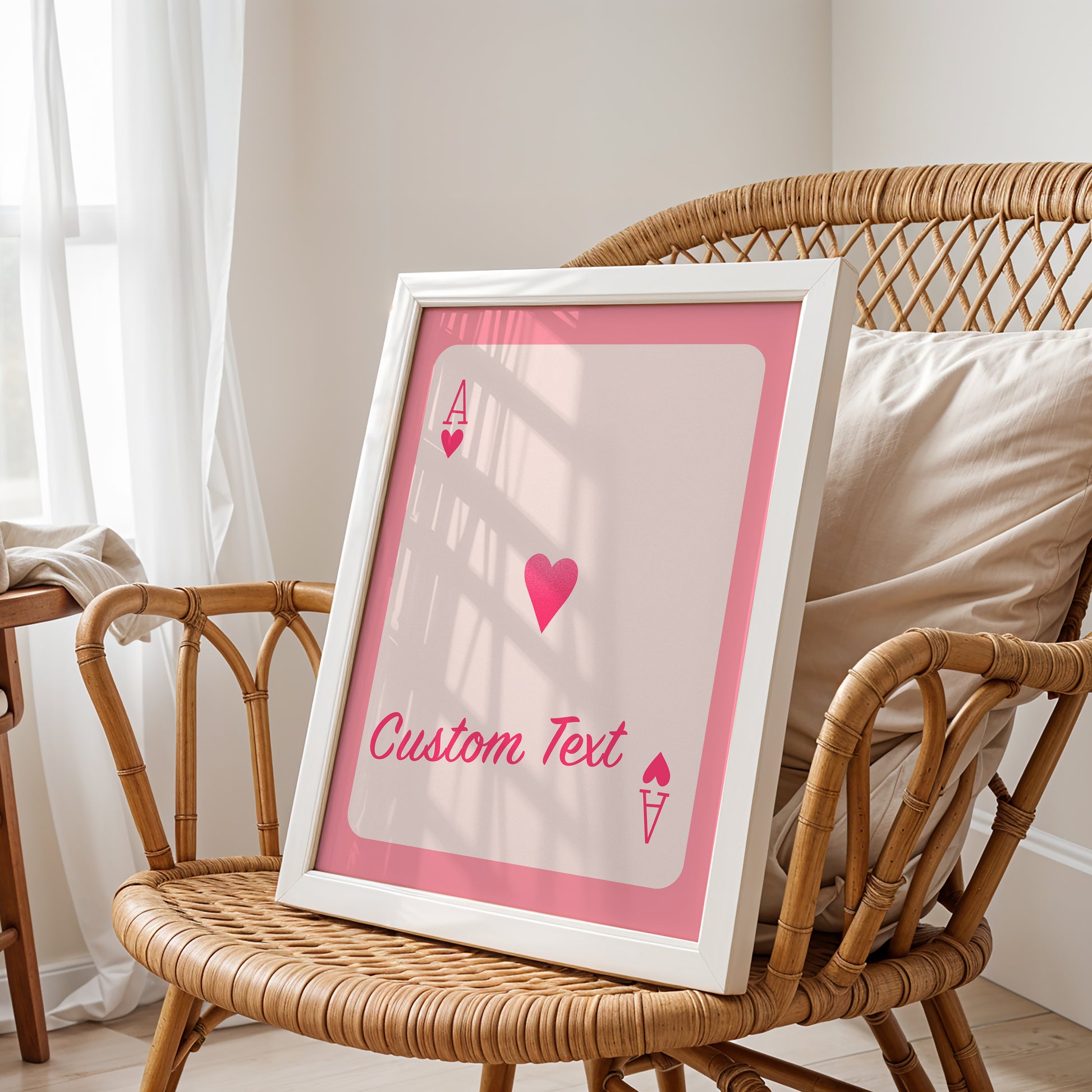 Bring your feelings to life with the Your Message on Ace of Hearts – a truly unique way to celebrate love, friendship, and special moments! Personalize this vibrant, playful wall art with your own custom message, making it the perfect gift or stylish addition to any room. The iconic Ace of Hearts design, rendered in bold pinks and soft creams, puts your words center stage for a heartfelt statement that’s both charming and fun.